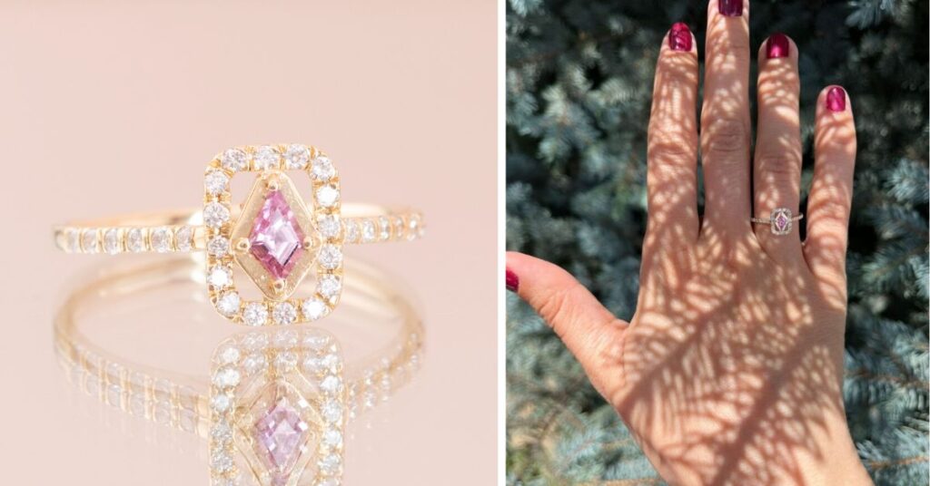Curiozitate: Actrita Zoe Kravitz a fost surprinsa purtand bijuterii cu diamante Kite Cut, apreciate pentru aspectul lor edgy. Cu taietura Kite, avem si un lot de Safire Naturale Roz Pal pe care le folosim inelul WILD ROSE. Il poti vedea la noi pe site, are un design cu adevarat special.